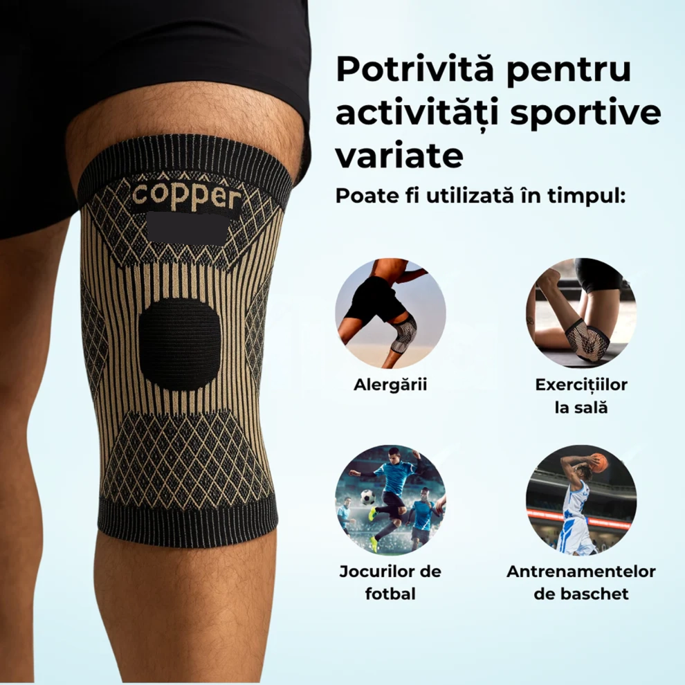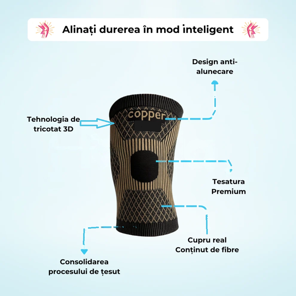 Genunchiera noastră, cu conținut ridicat de cupru și compresie țintită, îmbunătățește circulația sângelui, reducând inflamațiile și accelerând recuperarea.